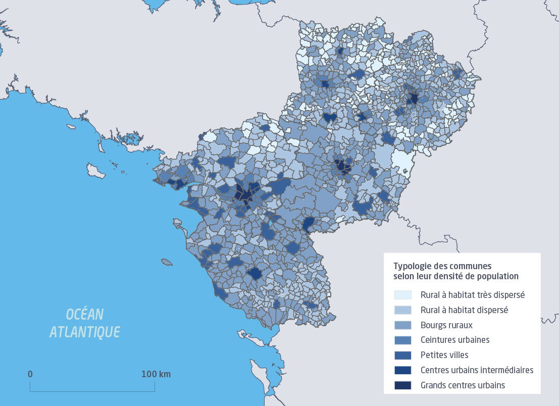 Ainsi, sous les effets conjoints de la croissance démographique et des recompositions territoriales, la région compte désormais relativement peu de petites communes : 288 communes de moins de 500 habitants, soit près d’un quart des communes ligériennes contre un peu plus d’une sur deux au niveau national. Ces dernières se concentrent surtout en Sarthe (133) et en Mayenne (101) et seulement 4 communes en Loire-Atlantique.